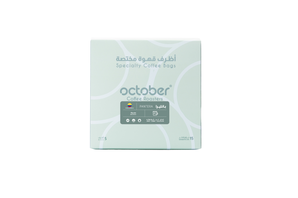 بوكس بانتيرا يحتوي على 5 أظرف، وكل ظرف فيه 15 جرام من القهوة المختصة المنتقاة بعناية من أجود مزارع كولومبيا، لتستمتع بتجربة قهوة راقية وسهلة التحضير أينما كنت.